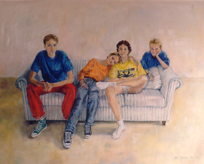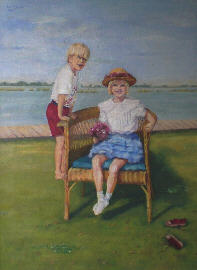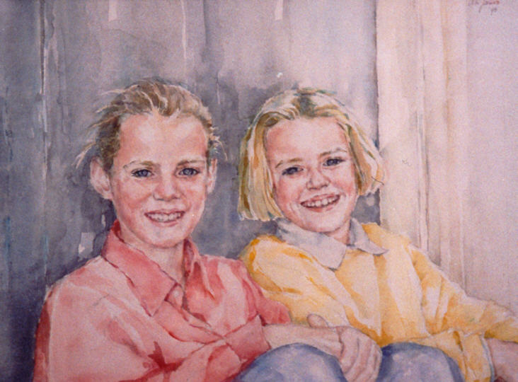 Vier kleinkinderen, olieverf 80x60cm                                    Cathinca & Titia, aquarel 60x40cm