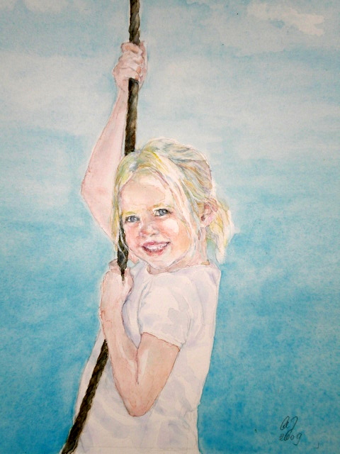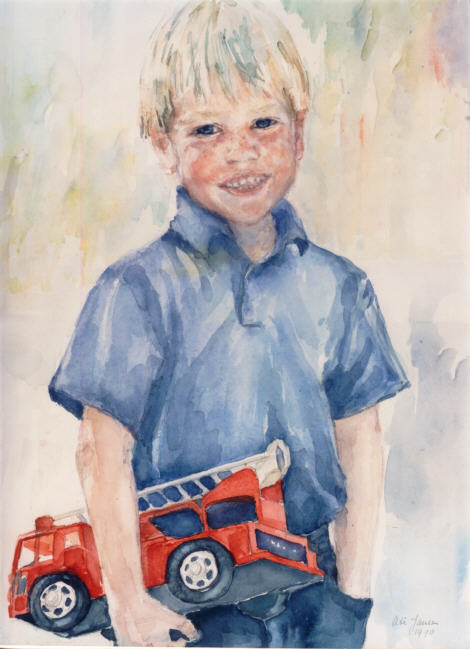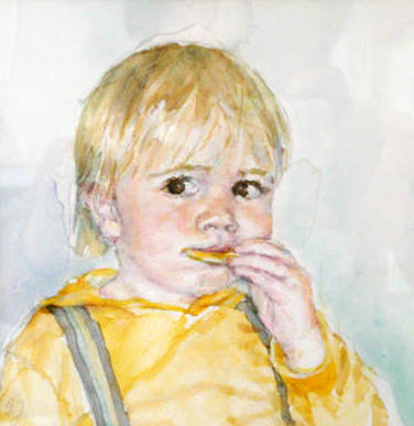 Het liefst schilder ik (jonge) kinderen. Omdat jonge kinderen niet lang kunnen poseren, wil ik ze graag ontmoeten in hun eigen vertrouwde omgeving.
