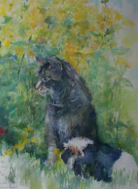 Dorith & Gijs, olieverf 45x60cm        Poes & cavia, aquarel  45x60cm        Mirte & Linnet, olieverf  45x60cm
